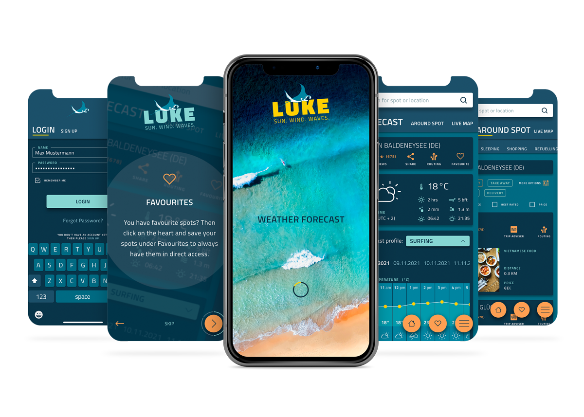 The main task of the VELA app is to provide water sports enthusiasts such as surfers, kiters and sailors with easy-to-understand and clear weather forecasts, wind and wave reports that enable them to safely plan their sports activities on or near the water.