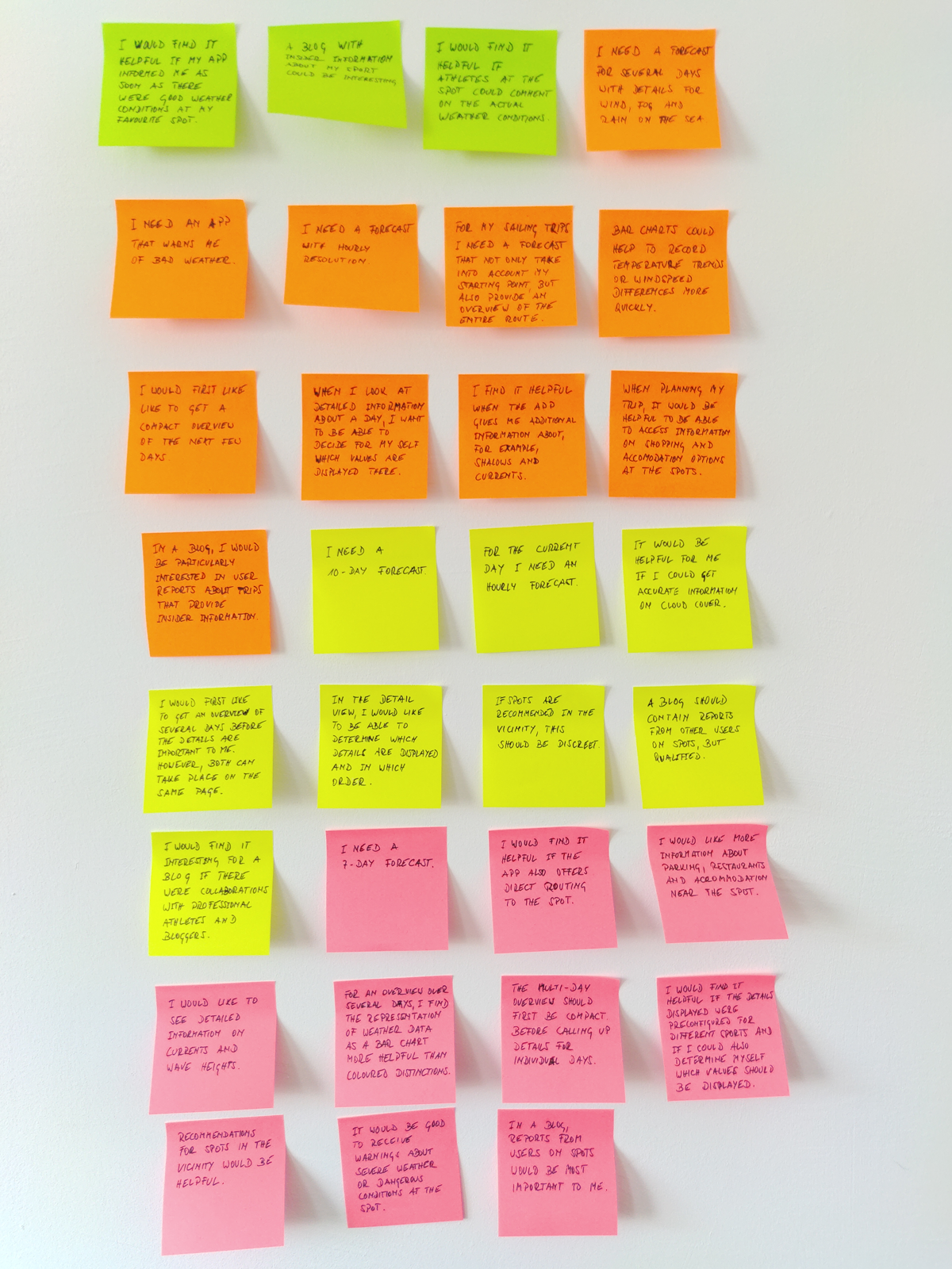 They should be able to search for spots, save favourite spots and trigger alerts when certain weather conditions are predicted at their favourite spot.