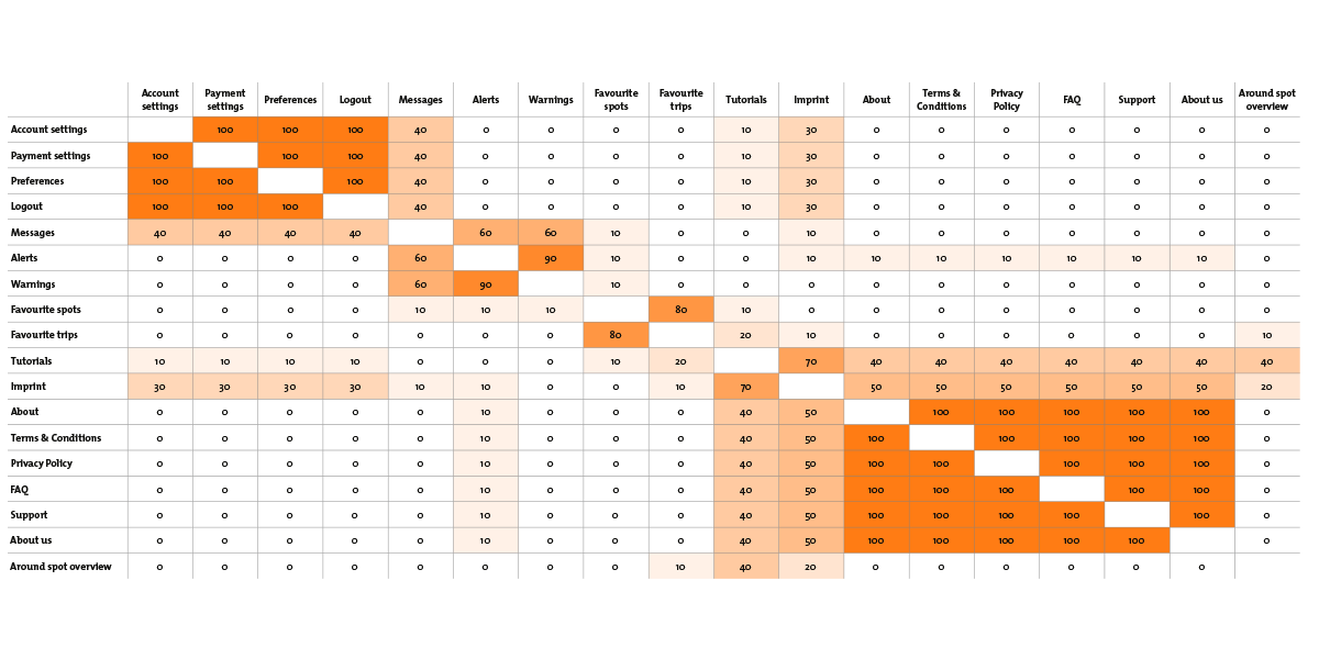 After the first sitemap, card sorting was used to find out whether the allocation of menu items is intuitive enough for users or whether menus and submenus should be sorted or renamed in a different more intuitive way. The result is a revised sitemap.
